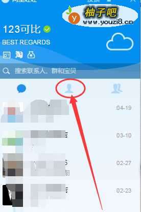 2登录后,默认显示的聊天是最近的聊天内容和聊天对象,找到上方一个小人的字样,如下图所示。