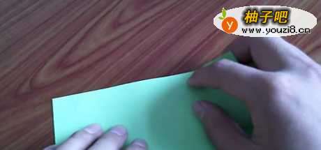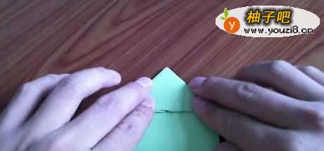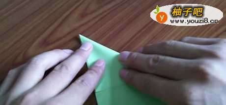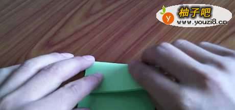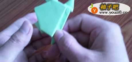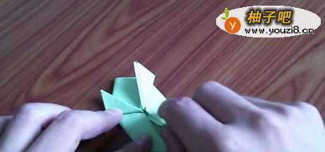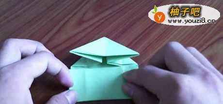 7把刚刚折好的青蛙身体对折一下,再开启,纸青蛙就完成了。