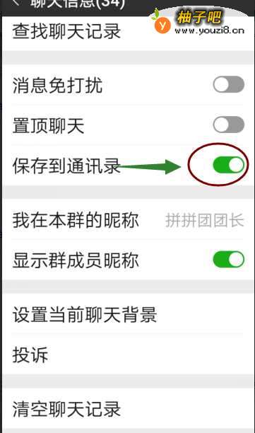 6在这个界面的下方,有一个保存到通讯录,把开关变为启用位置即可。下次你就能从通讯录的群聊里面找到这个群了。