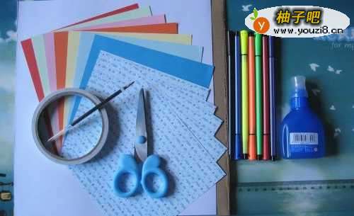 工具:裁纸刀、剪刀、直尺、铅笔、彩笔、胶水、双面胶