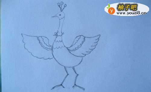 1. 用铅笔,在白纸上画出孔雀的身体;