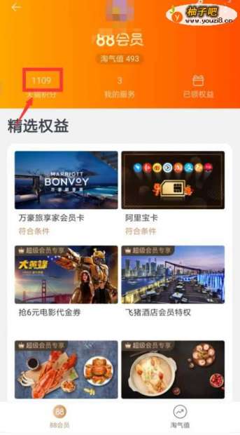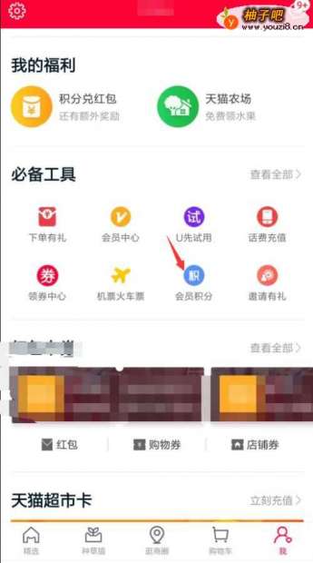 2如下图就能看到自己的天猫积分,1000积分能兑换10元天猫优惠券