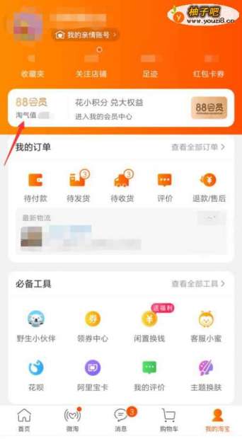 首先知道我们的天猫积分有多少,点击我的淘宝点击如下图淘气值部分