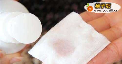 先用化妆水沾湿化妆棉,沾湿的面积约为1元硬币的大小,进行一个全面的卸妆