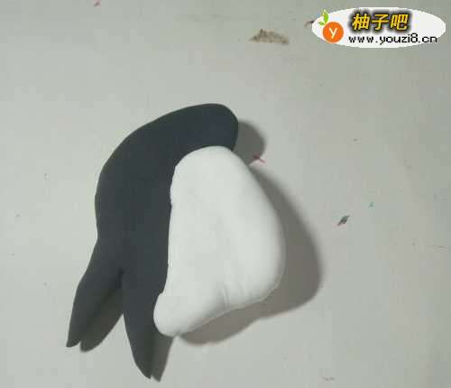 我们先用黑色的彩泥做企鹅的头还有背,然后再在前面用白色彩泥做大肚皮
