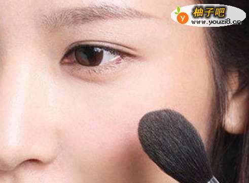 7然后刷腮红,用腮红刷顺着脸颊横着刷成今年流行的晒伤妆。