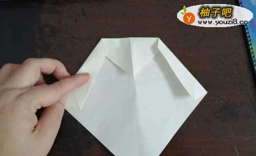 3把两侧的角向内折,再把下边的角向上折。