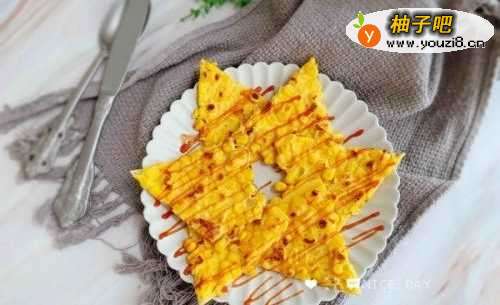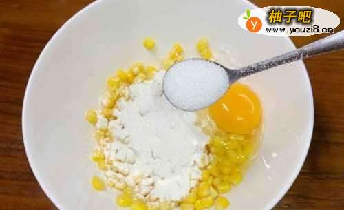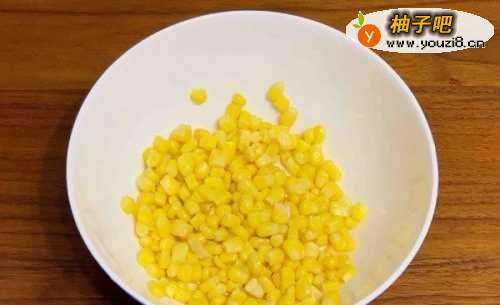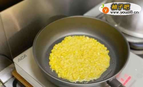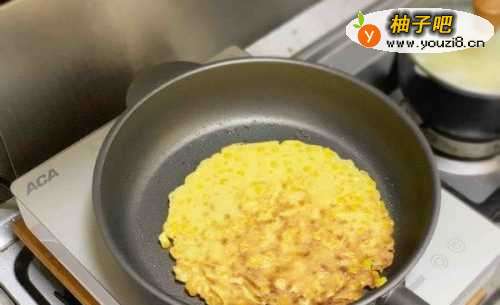 5把玉米面糊糊倒入锅中,用勺子按压均匀平整