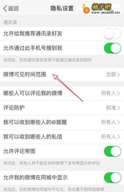 4开启隐私配置,即可看到微博可见范围了,我们点击它