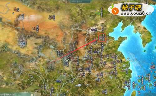 5到达霸刀山庄地图后,我们从神行点飞到【鹰扬谷】左侧红框处。