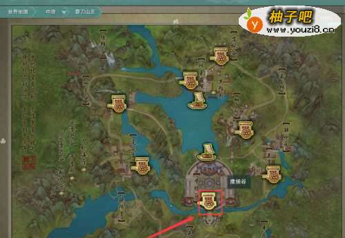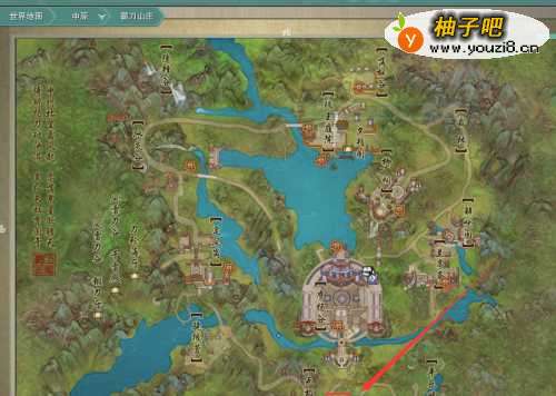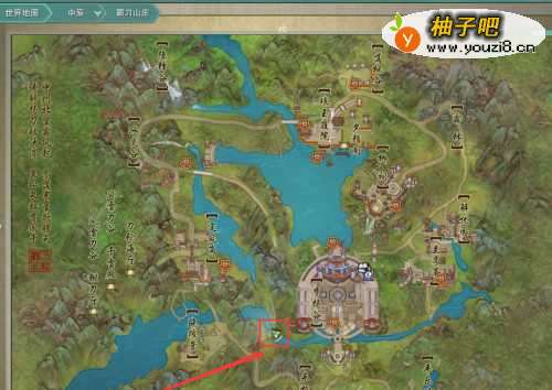 2在开启的世界地图拒岔中,我们点击【霸刀山庄】地图。