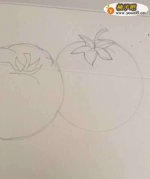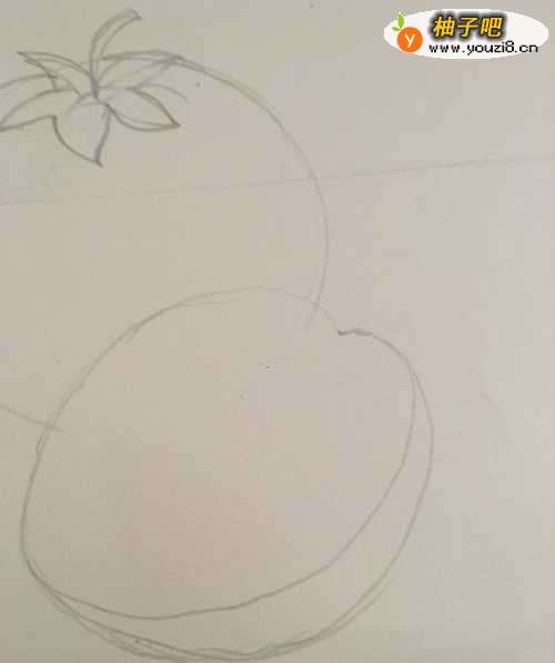 3第三步 再画上另一个西红柿在旁边 向里挨一些 不然太零散