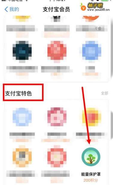 3然后在 支付宝会员 的页面,找到 支付宝特色 ,并点击 能量保护罩 。