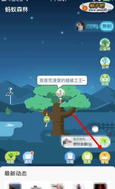 5兑换成功后,进入 蚂蚁森林 的主页面,点击 背包 。