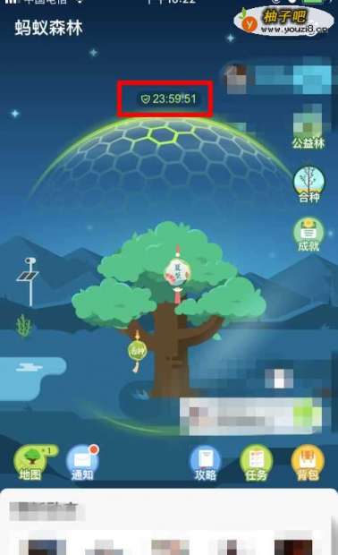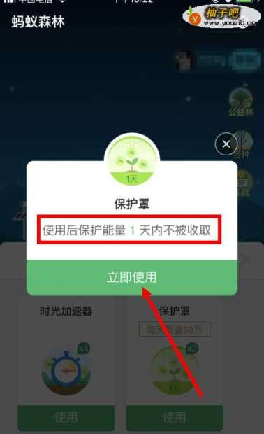 9回到 蚂蚁森林 的主页面,能看到一个绿色的保护罩,以及保护罩上面会显示倒计时。