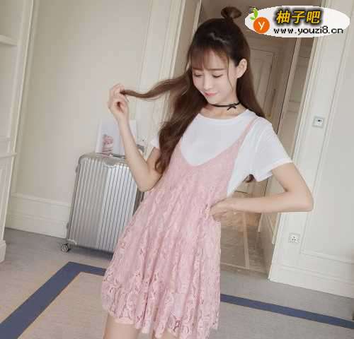 LOOK2:白色t恤+白色蕾丝打底衫今年很流行蕾丝打底衫,不管是搭配衬衫、卫衣、毛衣都特别时尚,搭配一件白色t恤,潮范儿十足。