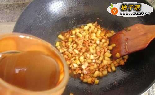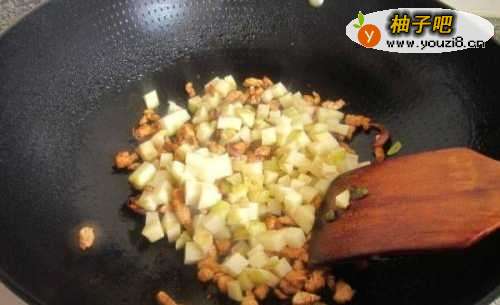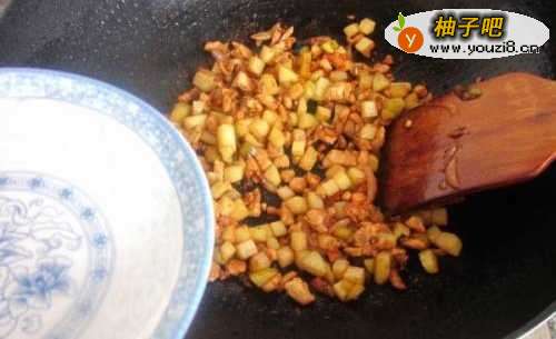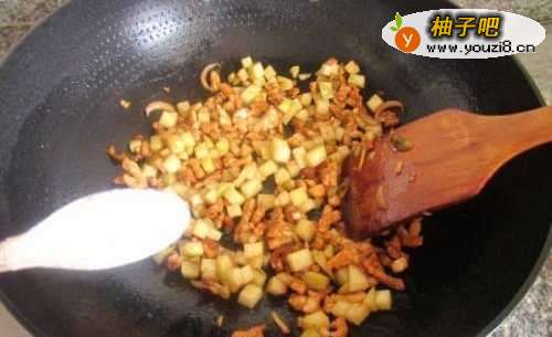 5放土豆丁用铲子不停的煎炒