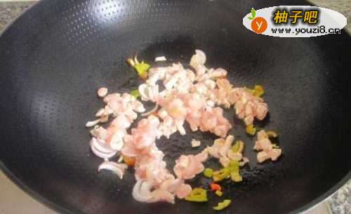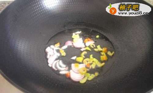 2热油锅爆香洋葱青红椒末
