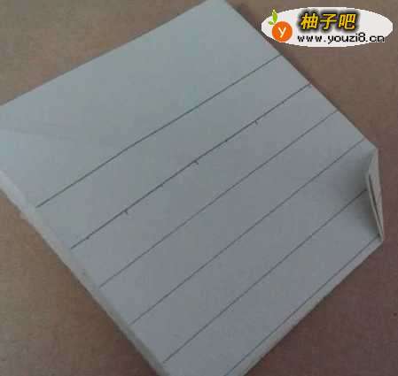 2接着拆开后,将小正方形凹进去,如图,再将边缘折一下,正反都要折哦。