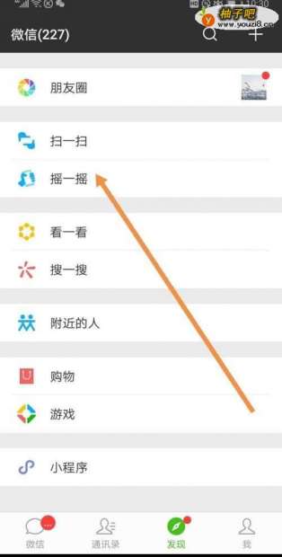 3在发现入口找到”摇一摇“。