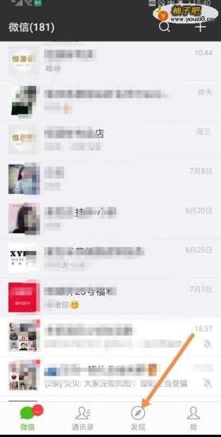 2在微信的主页面找到并点击“发现”。