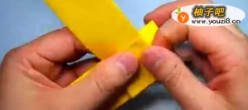 5把折成的“L”形的其中一边,继续向内对折,使其成为“I”的形状。