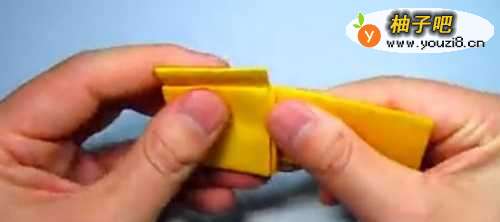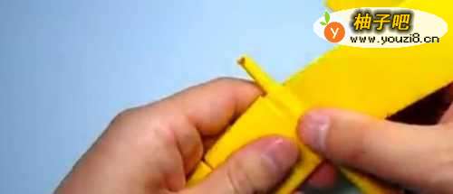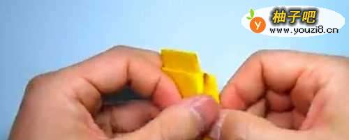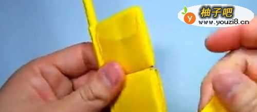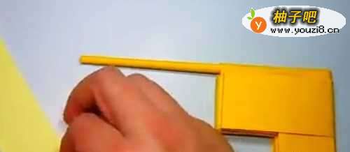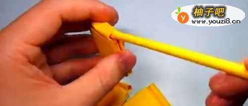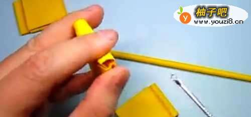 12之后,就能把折纸出来的“枪管”放入这个方块小部件里面了。