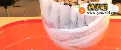 7现在量取2杯子自制浑浊水,慢慢倒于小碎石上。注意观赏察过滤器底部流出的水,过滤后的水没有异物,且水质比较清澈。注意,自制净水器只有过滤步骤,是未经消毒的水,因此不可直接饮用。