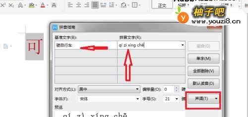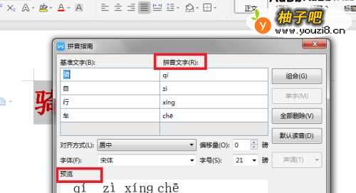 4点击拼音手册后会出现下图,已经自动生成了“骑自行车”的拼音,并可预览。