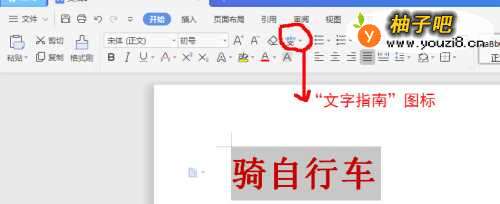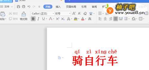 先启用WPS,新建文档,将“骑自行车”四个汉字打出来。之后长按鼠标左键滑动覆使阴影覆盖住”骑自行车“(需要注音哪个字就覆盖哪个字就好)四字。如图: