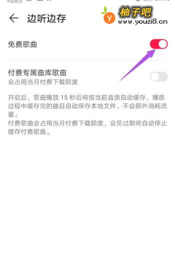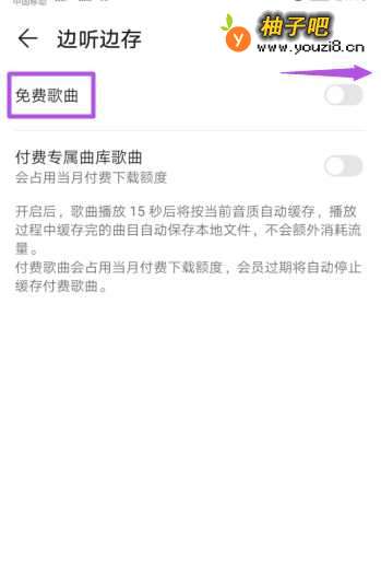 5之后将免费歌曲的开关向右滑动。