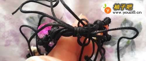 3如图下图一、二、三所示的方式把两边的四根绳子编到把珠子围起来的程度。