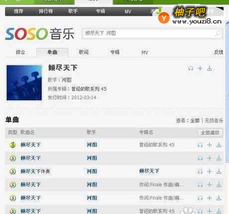 2键入音乐名或者歌手名例如倾尽天下