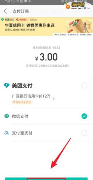 6点击后,在支付页面支付金额,然后返回美团,即可开通美团外卖会员。