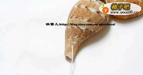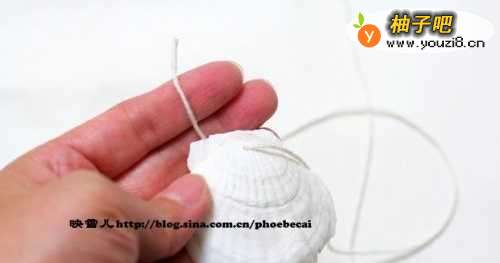 8距离5CM左右,在贝壳内侧打两个结固定。