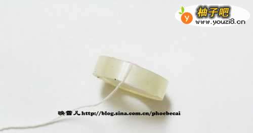 5取三条长的棉线,线的一头可用透明胶包裹一下,这样比较容易穿孔。