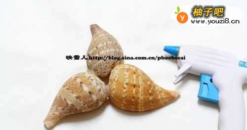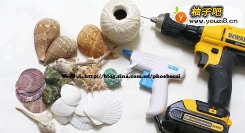 贝壳,热溶胶枪,小电钻,棉线,透明胶。