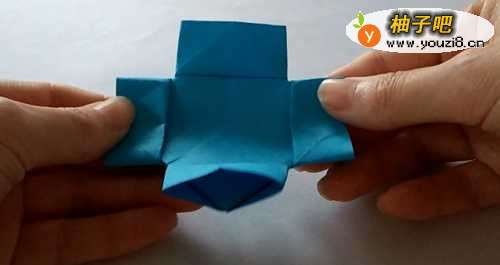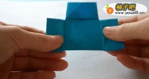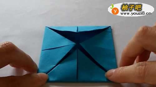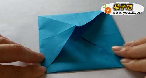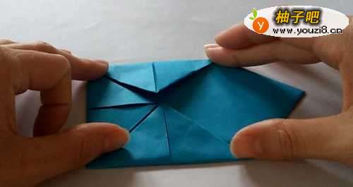7翻面,折叠三个角,然后翻过来折叠另外一个角,折叠好后,将上面的两个角折叠下来,下边向上折叠。