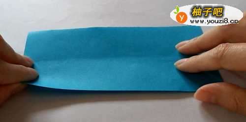 9然后准备一张长方形纸(是之前用的正方形纸的一半),如图折叠外面一层。