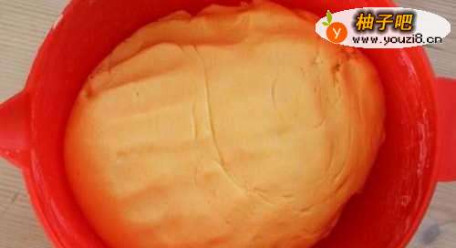 5把糯米粉与山芋泥混合,揉成光滑面团
