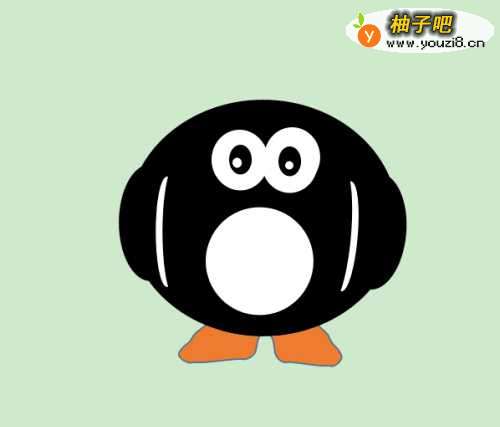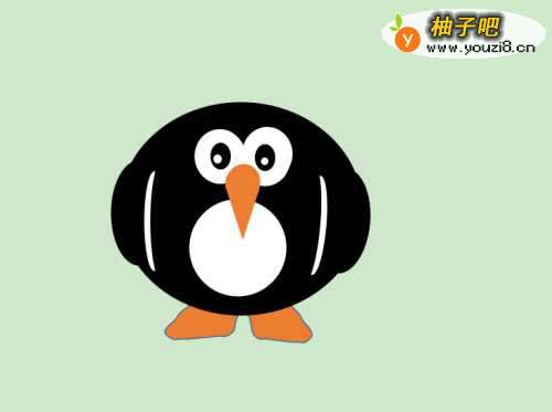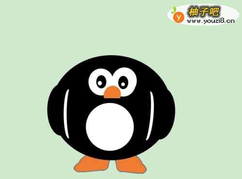 4利用椭圆形绘出企鹅身体上的百白色圆形。