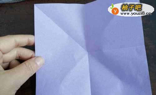 首先准备好正方形的彩纸,先把彩纸的中间折出十字型。