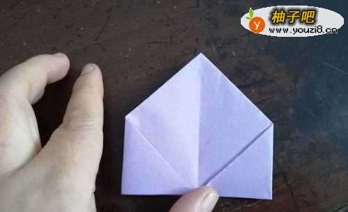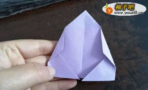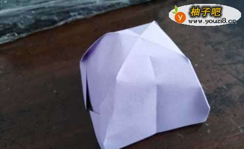 6然后把彩纸从中间撑开,小帐篷就折好了,就是下图的样子。