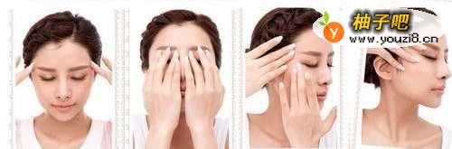 1、用双手中指指腹放在眼头位置指压,每次六秒。