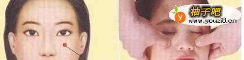 2、再用食指及无名指按眼肚位。