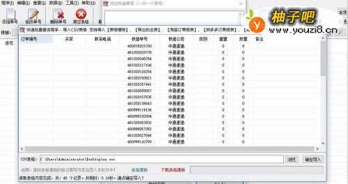 88. 接下来在下图高手软棍鬼件中选择‘添加单号’中的从CSV表格中导入选择刚才保存好的文件,点击确认导入,软件就肺蕉会自动浏览出信息