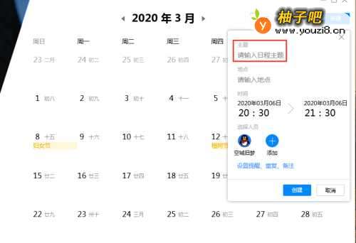 4输入日程主题,如图