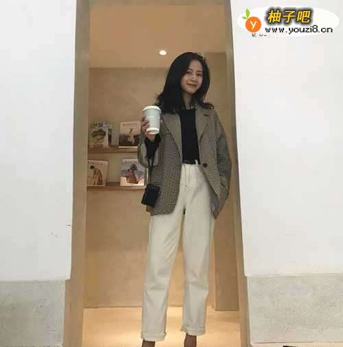 搭配四:牛仔老爹裤+白色T恤+黑色西装外套黑色西装外套是今年的热门单品,时尚又帅气,搭配一件简单的白色T恤,再搭配一条牛仔老爹裤,帅气十足。