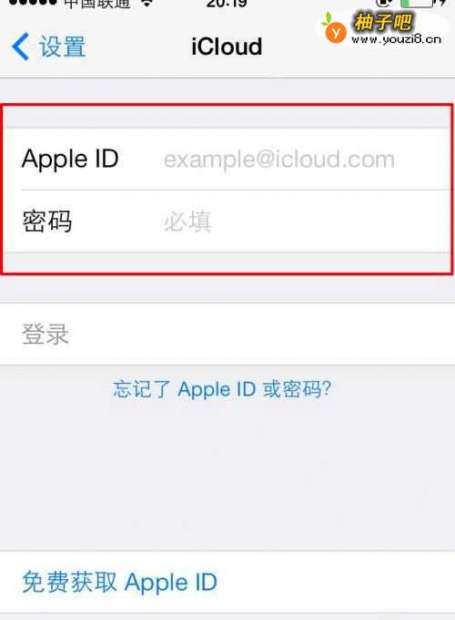 6删除完毕之后,就需要从新进入iCloud界面里面登陆新的ID账号;然后填报你的ID账号跟密码确定登陆就完成了。