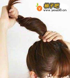 6将所有头发扎起并扭转一圈。注意整个发型的抓松度,后脑勺部分要特别留意,避免过于紧绷,变得呆板。